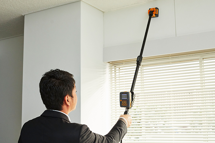 約1m14㎝迄 伸縮ハンドルを備えた水分計ですので、床や手の届きにくい壁や天井の測定を素早く・安全かつ簡単に行うことが出来ます。緑・黄・赤色ランプで水分レベルを判断します。